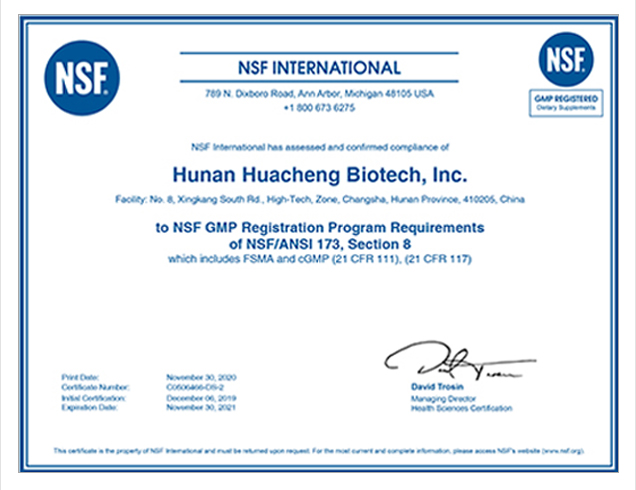 Certified by NSF-cGMP